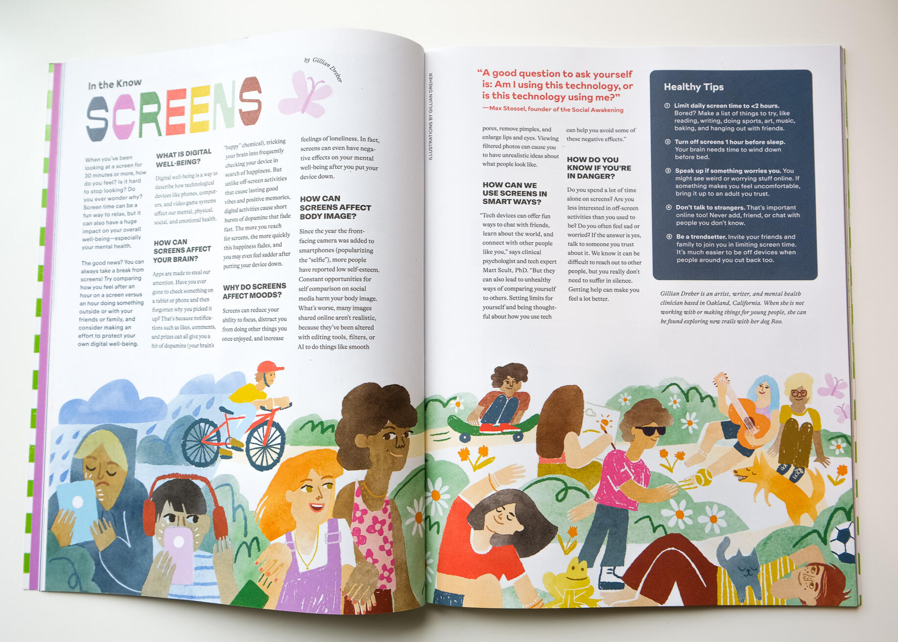 An article for middle-grade magazine Anyway that guides tweens as to how to balance their screen time to make more time for the things they enjoy.
